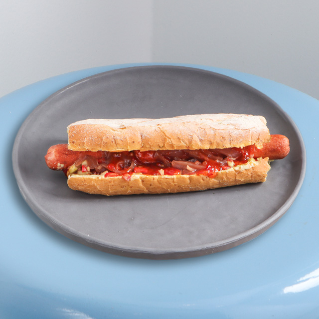 نان ساندویچ – سوسیس فرانکفورتر – سالسا – پیکل پیاز – خیارشور – سس دست ساز